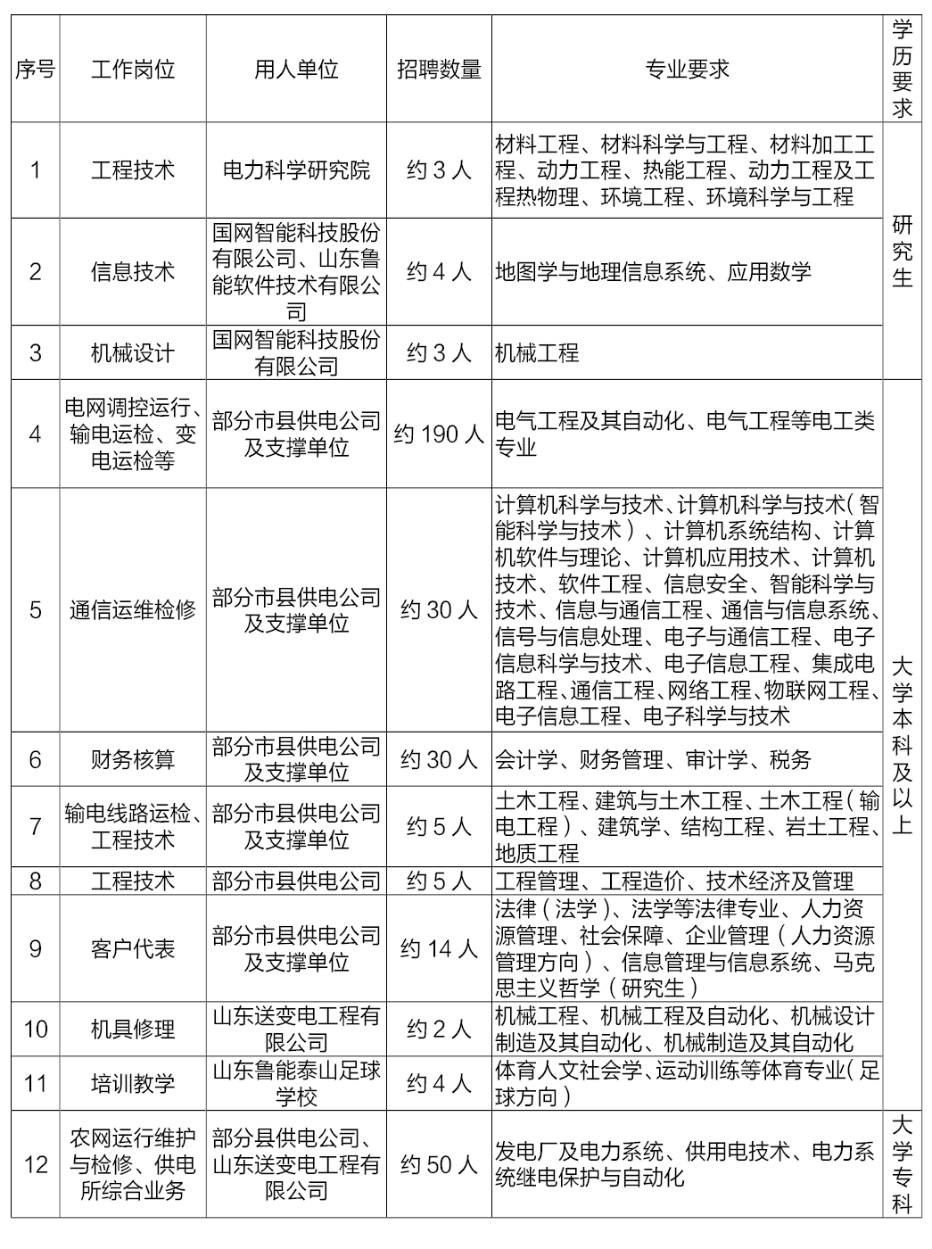 3.笔试、面试的时间地点,详见国家电网有限公司人力资源招聘平台国网山东省电力公司有关公告通知。