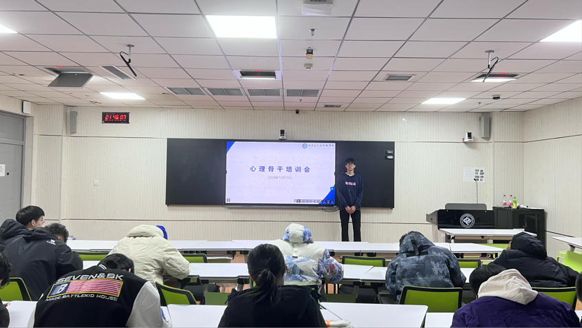 为进一步加强学部心理健康教育工作队伍建设,提升心理骨干的专业素养与朋辈辅导能力,齐鲁工业大学(山东省科学院)电子电气与控制学部于12月15日晚在控制学部楼246智慧教室举办“心灵引航,骨干赋能”心理骨干培训会,本次培训会由学生会心理服务部部长徐世锋主持。