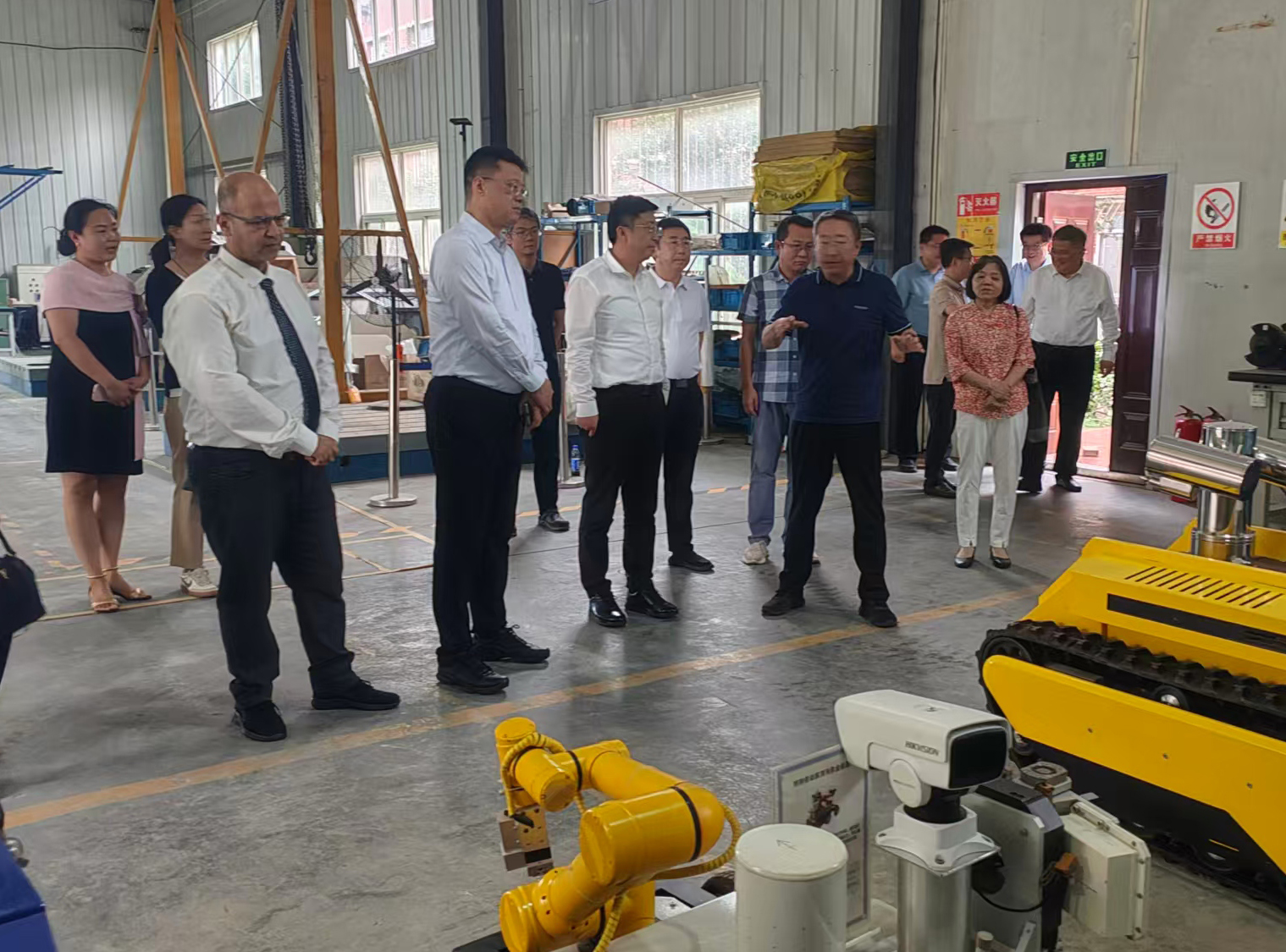 随后,祝恩元副厅长、李天传局长一行到智慧消防、水下机器人、机器人等实验室参观,详细了解了有关科技成果情况,并与在学部工作的外籍专家进行了交流。