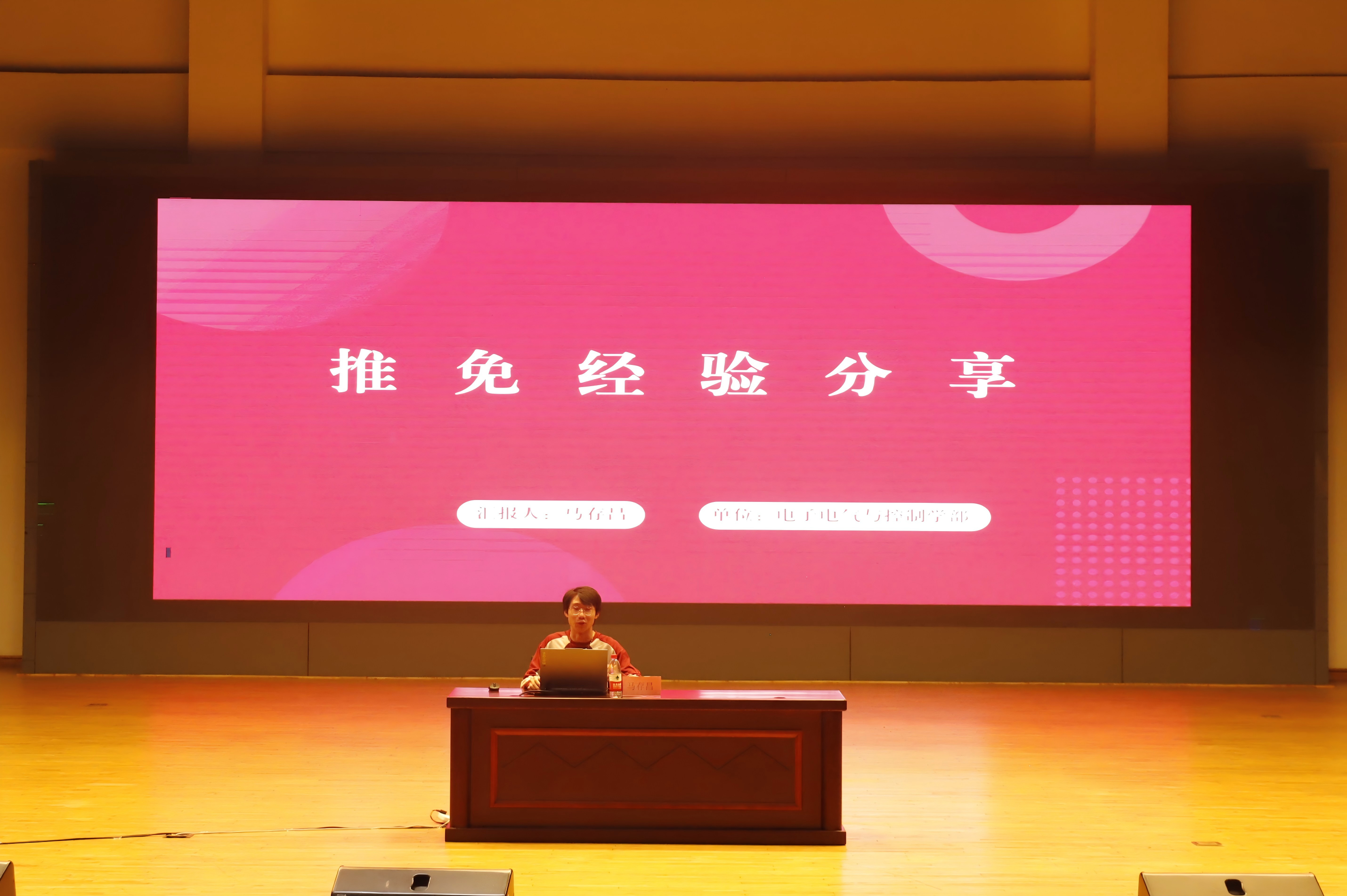 9月29日晚,齐鲁工业大学(山东省科学院)电子电气与控制学部在艺体中心成功举办推免政策宣讲及优秀学子经验分享会?;疃?/span>邀请控制学部党委委员、副主任肖中俊主讲,邀请四位成功保研至“双一流”高校的学生王烁、李培昕、马存昌及杨瑞分享各专业推免经验,学部全体大一新生和部分大二学生参加活动。
