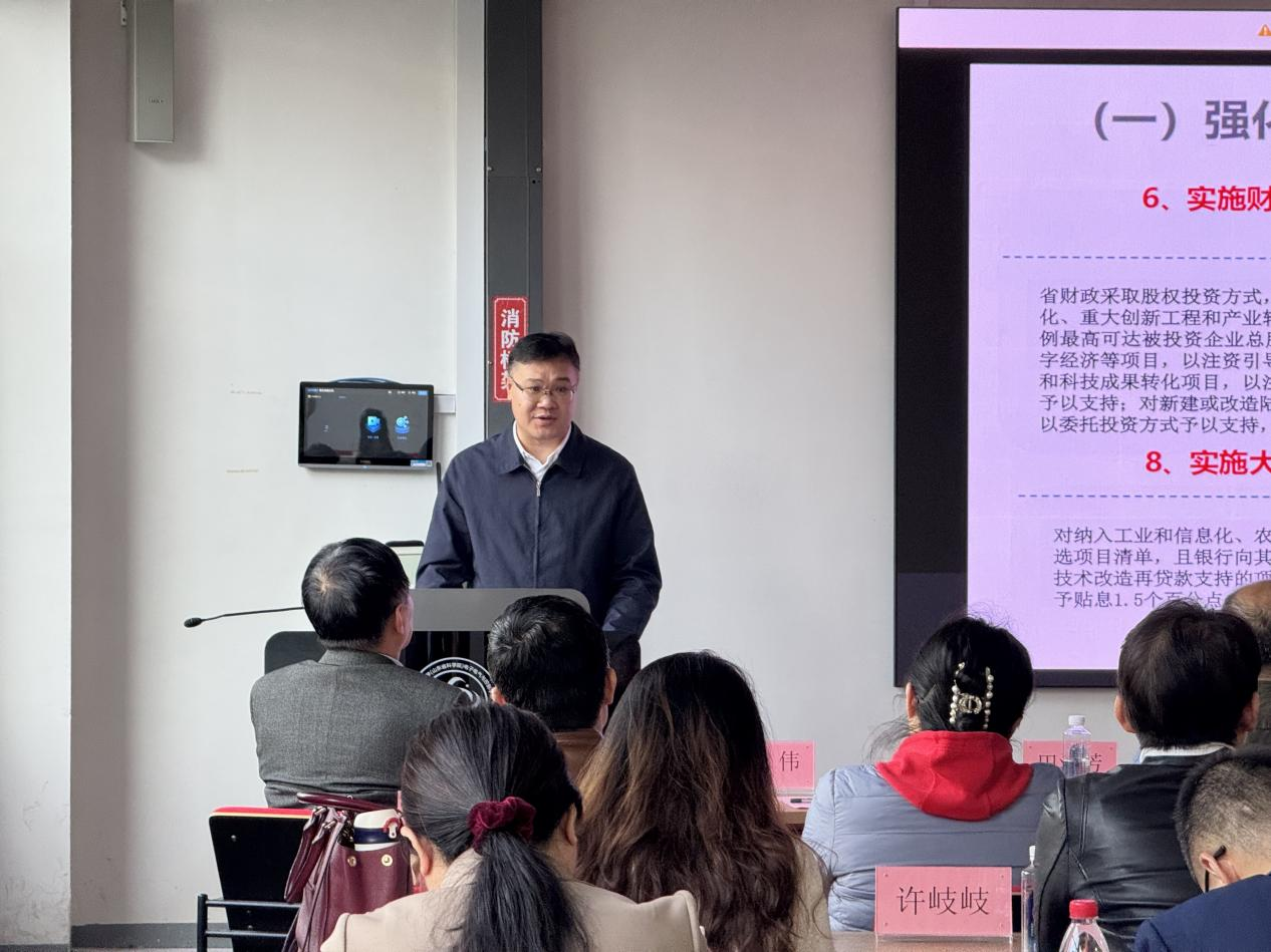 校友代表贾磊以《中美博弈环境下的科技创新与产业化升级》为题,指出当今世界正面临“百年未有之大变局”,分析了中国未来工业化道路的机遇和挑战,随后他结合自身研究经验就科技创新如何发挥好政、产、学、研、金各自的作用进行了阐述。校友张继宾以《财政支持中小企业政策解读》为题,分别从支持企业创新发展、助力民营经济转型发展、拓宽民营企业融资渠道、提高政策便利度和可及性等方面解读了政府财政对民营企业的政策支持。交流环节,校友们深情回顾在母校的求学时光,分享自身创业过程中的成长与感悟,结合自身创业经历与行业实战经验,围绕科技创新、产业升级、国家政策、人才培养、校企合作等核心话题各抒己见,为母校发展建言献策,现场掌声不断。