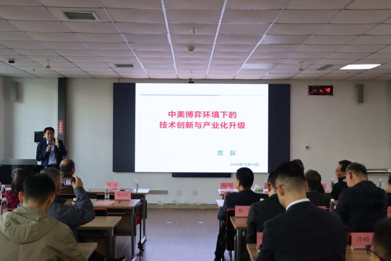 校友代表贾磊以《中美博弈环境下的科技创新与产业化升级》为题,指出当今世界正面临“百年未有之大变局”,分析了中国未来工业化道路的机遇和挑战,随后他结合自身研究经验就科技创新如何发挥好政、产、学、研、金各自的作用进行了阐述。校友张继宾以《财政支持中小企业政策解读》为题,分别从支持企业创新发展、助力民营经济转型发展、拓宽民营企业融资渠道、提高政策便利度和可及性等方面解读了政府财政对民营企业的政策支持。交流环节,校友们深情回顾在母校的求学时光,分享自身创业过程中的成长与感悟,结合自身创业经历与行业实战经验,围绕科技创新、产业升级、国家政策、人才培养、校企合作等核心话题各抒己见,为母校发展建言献策,现场掌声不断。